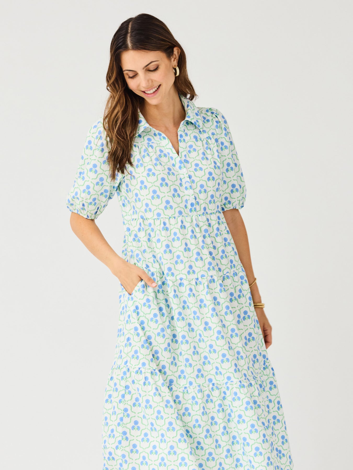 The Eloise Dress is an easy favorite you’ll reach for again and again. Designed with charming puff sleeve details and a flattering tiered midi skirt, this silhouette strikes the perfect balance between relaxed and elevated. Thoughtfully finished with side pockets (because we know that matters), Eloise is ideal for everything from casual days to dressed-up moments.