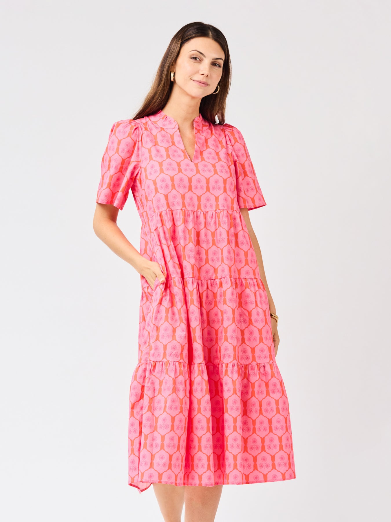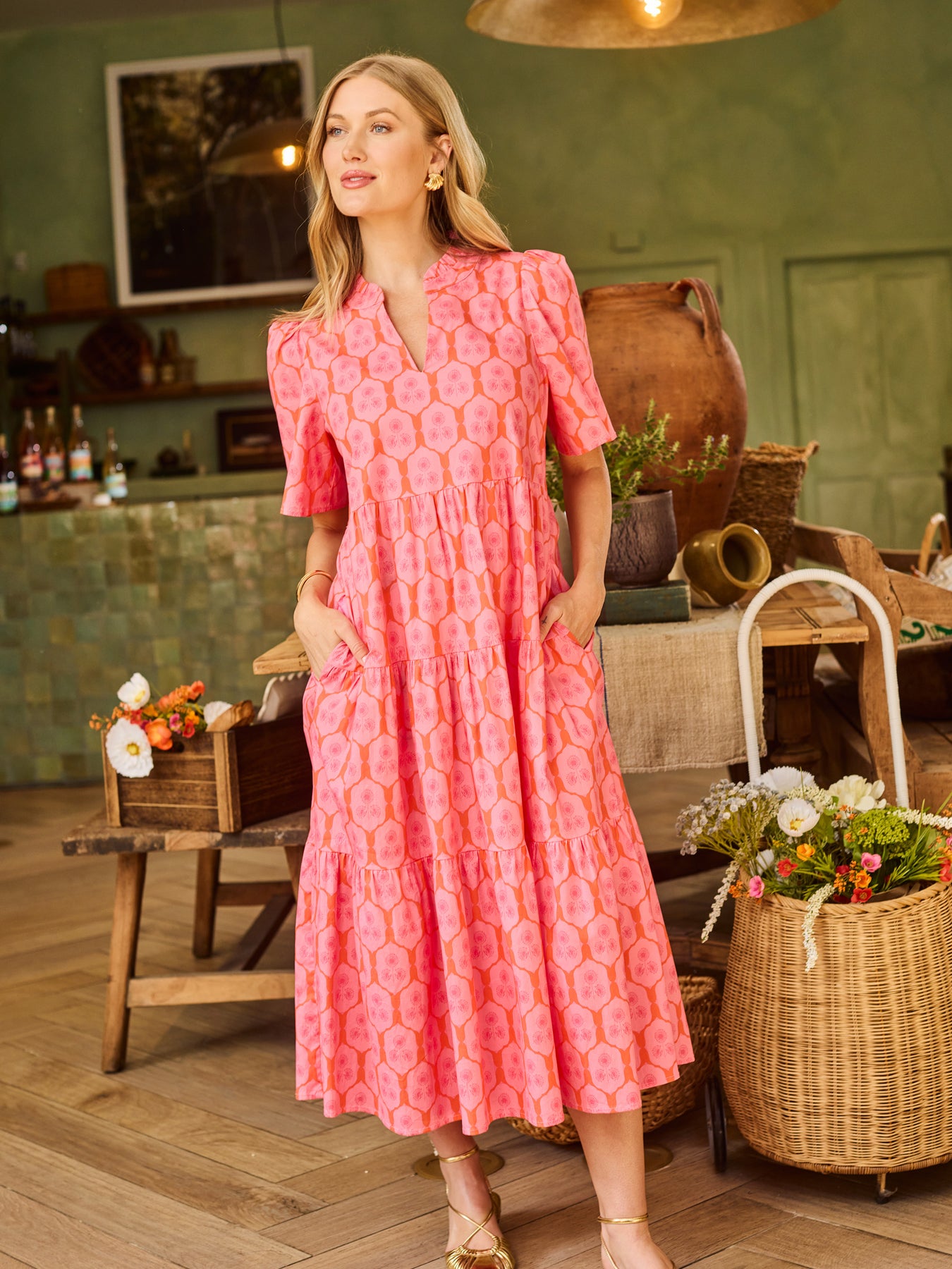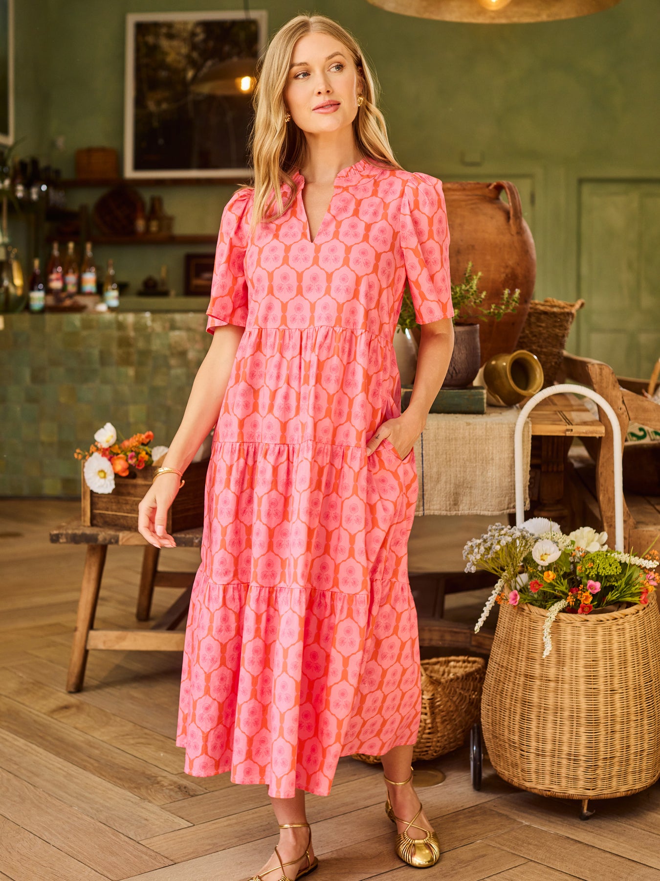 The Ivy Dress is one of those throw-on-and-go styles that still feels special. With flutter sleeves, a ruffle neckline, and a flowy tiered midi skirt, it brings just the right amount of movement and charm. And yes, it has pockets (always a win). Easy to dress up, easy to dress down, and made for wherever the day takes you.