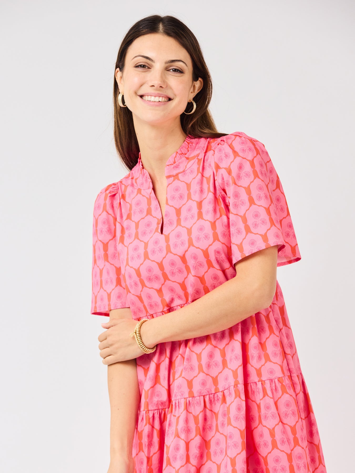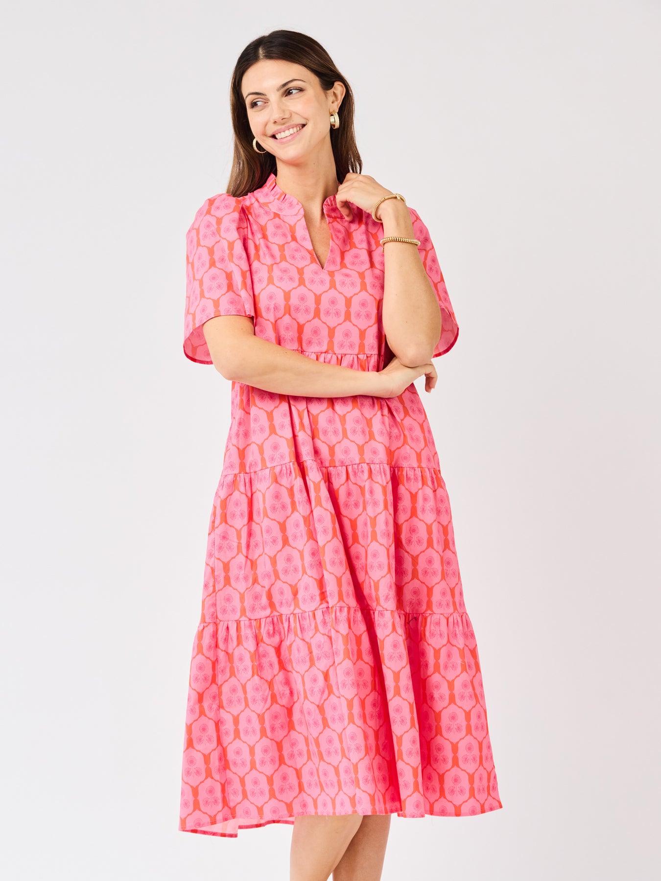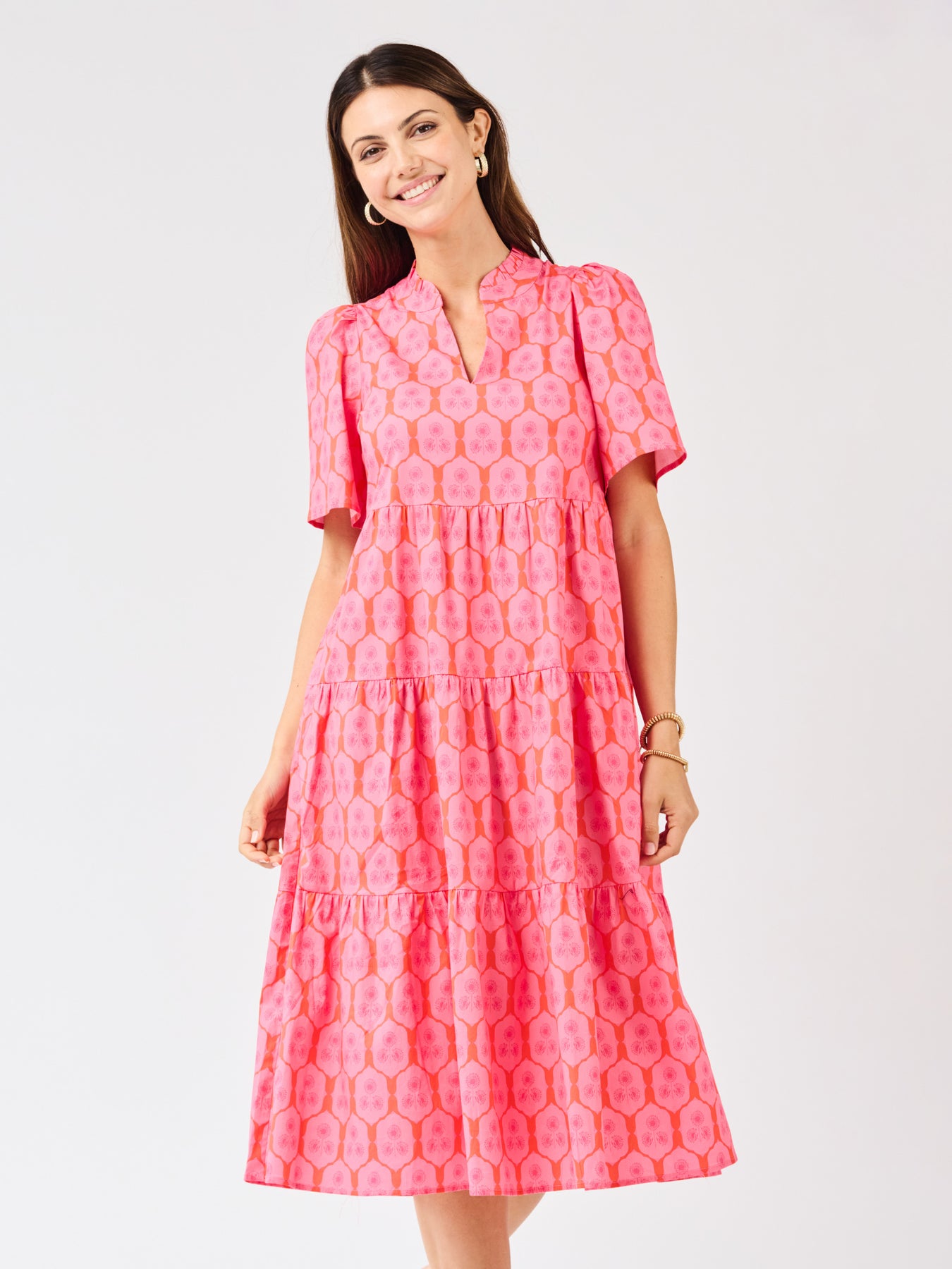 The Ivy Dress is one of those throw-on-and-go styles that still feels special. With flutter sleeves, a ruffle neckline, and a flowy tiered midi skirt, it brings just the right amount of movement and charm. And yes, it has pockets (always a win). Easy to dress up, easy to dress down, and made for wherever the day takes you.