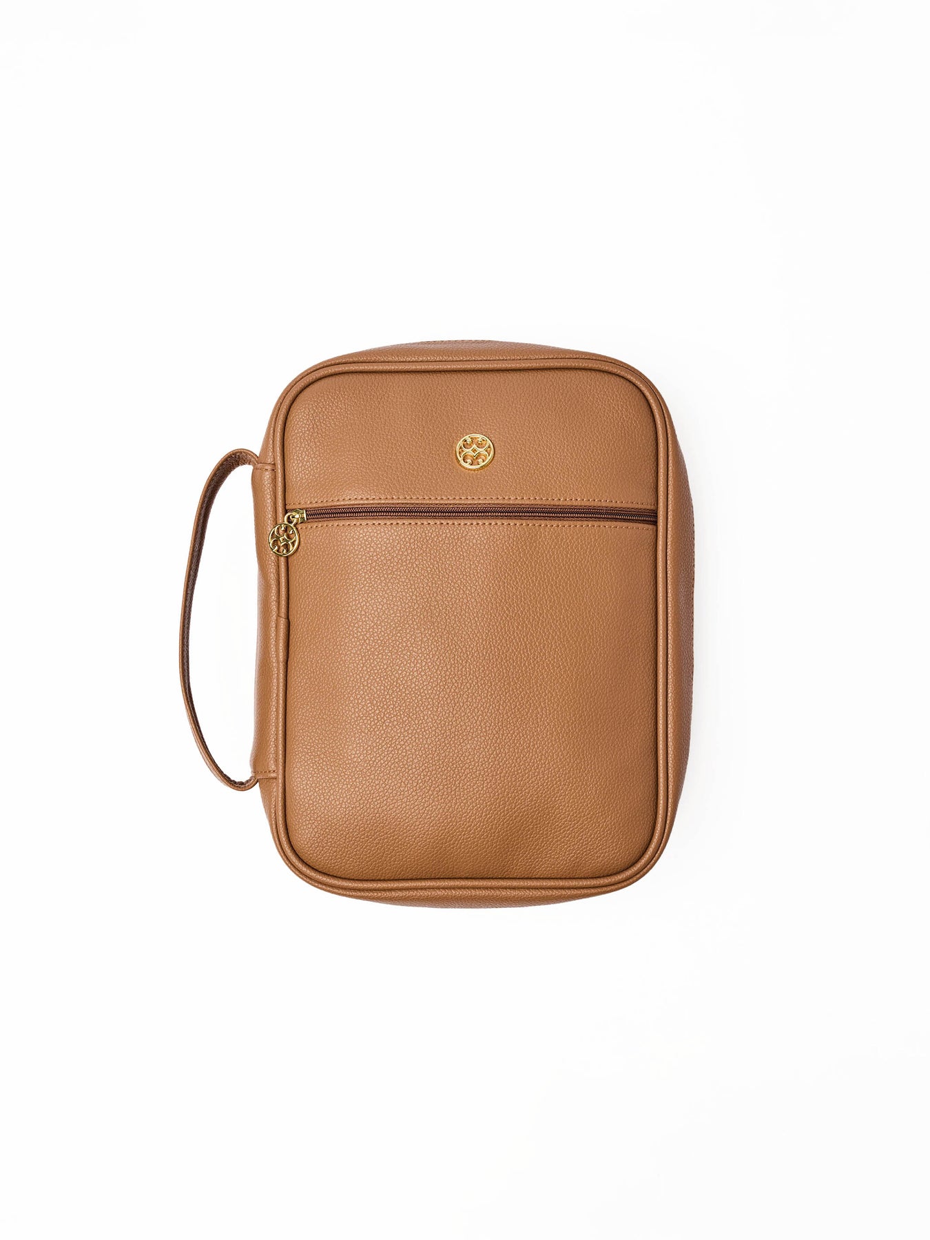 Introducing our new Bible Cover in luxurious vegan leather, where timeless style meets everyday function. Whether you're heading to church or a Bible study group, this cover is designed to protect and organize. The full zippered exterior keeps your Bible secure, while the thoughtfully designed interior features multiple pockets for notes and study guides, plus an elastic pen holder for added convenience. Sleek, practical, and gift-worthy, it's the perfect companion for your faith journey.