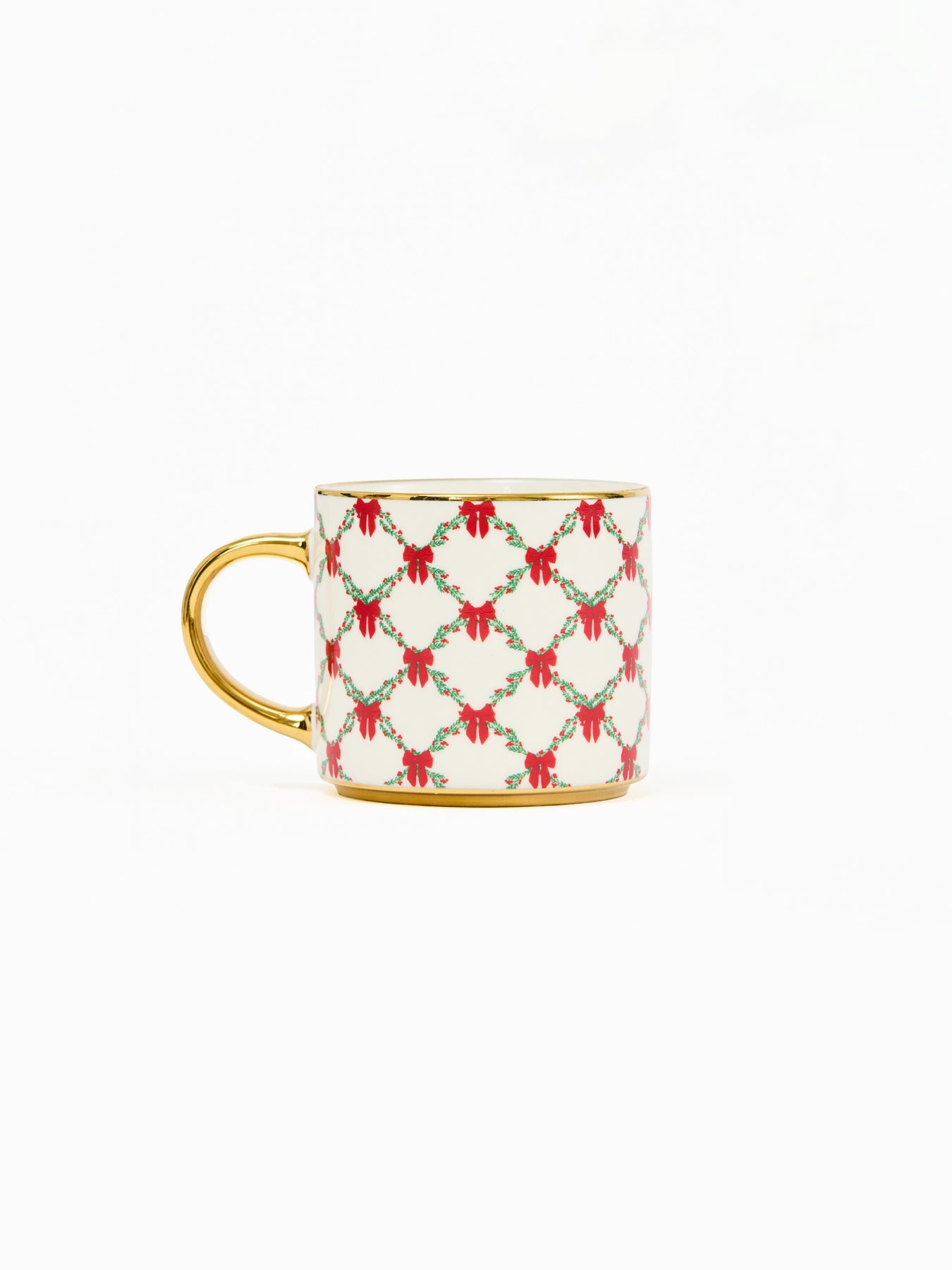 Enjoy your favorite holiday beverages in our Holiday Trellis Cafe Mug. Featuring our classic trellis design accented with delicate red bows, this mug brings timeless festive charm to every sip. With its comfortable size and elegant pattern, it's perfect for cozy mornings, holiday gatherings, or gifting during the season.