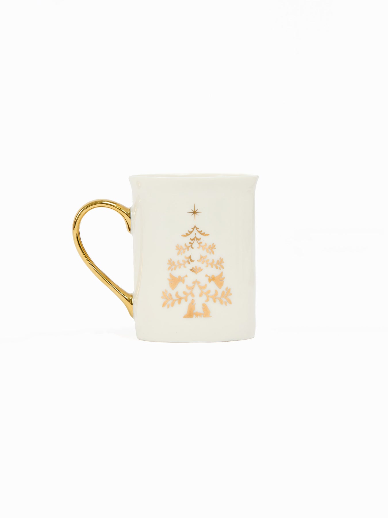 Celebrate the season with our Nativity Tree Mug, featuring a beautiful gold foil design of angels and nativity scenes artfully arranged into a festive Christmas tree shape. With its elegant gold handle and classic white ceramic finish, this mug brings sacred holiday charm and warmth to every sip, perfect for cozy mornings or festive gatherings.