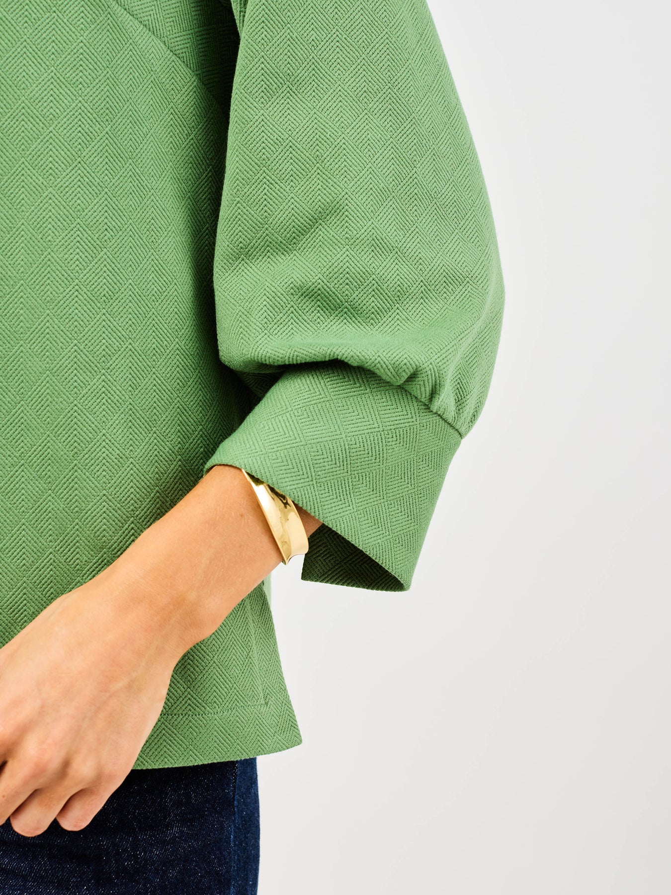 The Jocelyn Top is a refined piece that pairs effortlessly with any outfit. The subtle textured fabric adds a sophisticated touch, while the pop collar v-neckline keeps things fresh and modern. With 3/4 sleeves featuring stylish slits at the cuffs, this top allows you to express your unique style.