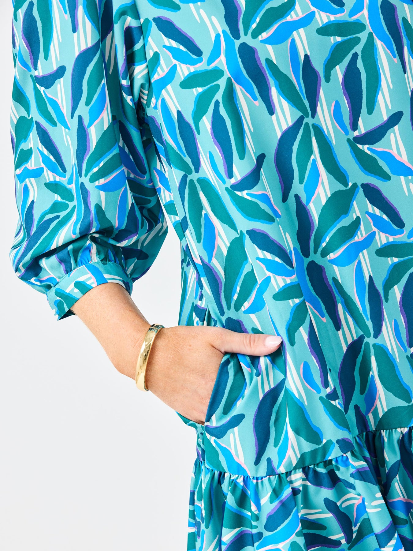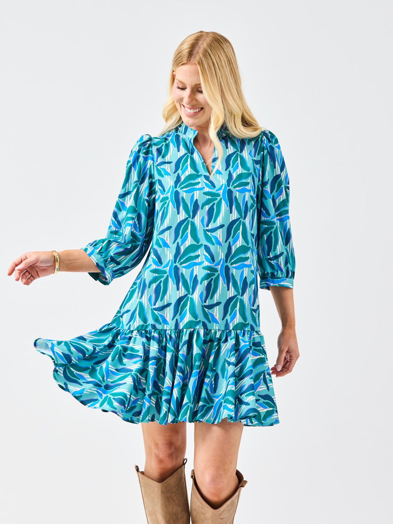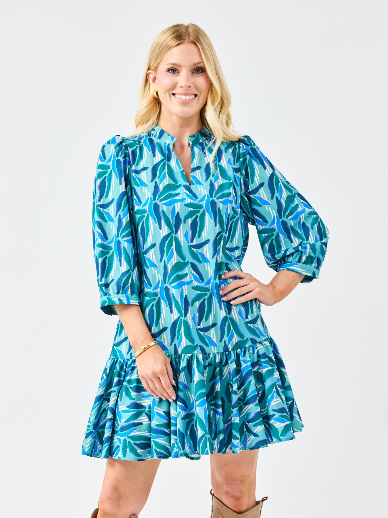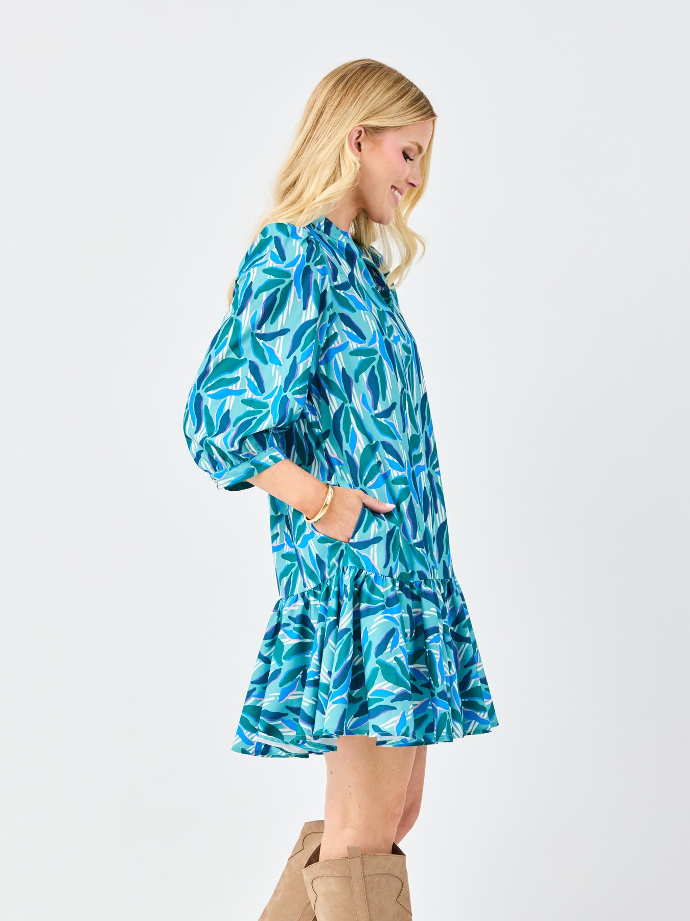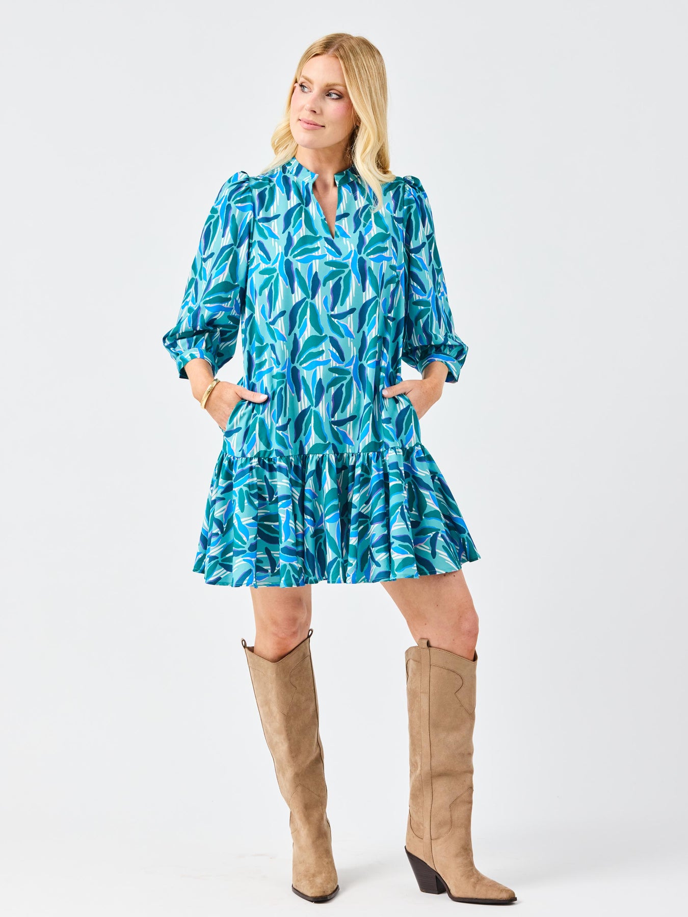 Effortlessly chic and endlessly versatile, the Naomi Dress is a perfect blend of sophistication and charm. Featuring a romantic ruffle V-neckline and 3/4 sleeves with elegant puff shoulders, this dress brings timeless femininity to your wardrobe. The contrast trim details add a modern, polished touch, while the functional pockets combine style with everyday practicality.