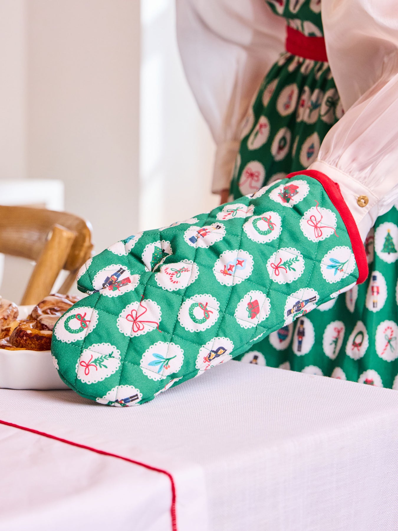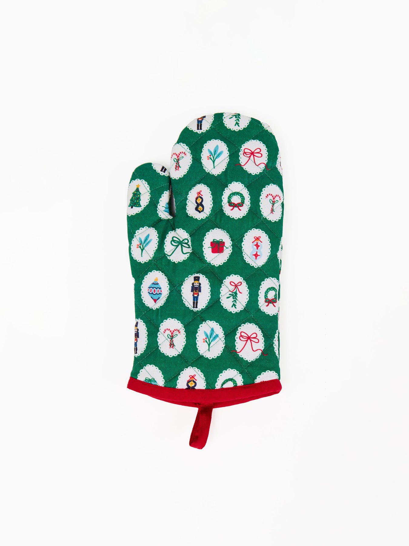 Add a touch of festive elegance to your kitchen with our Christmas Tidings Oven Mitt. Featuring a deep, rich green color accented with classic holiday icons, this mitt brings seasonal charm to your cooking and baking. Quilted for comfort and designed for easy use, it’s a stylish essential for every holiday kitchen.
