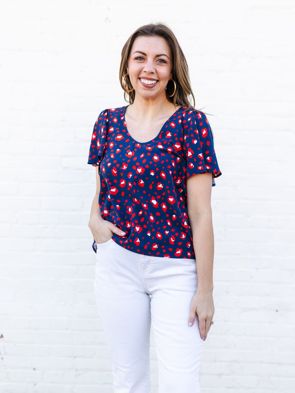 The Gameday Paisley Top: the perfect blend of style and team spirit. Featuring a modest v-neck, an a-line silhouette, and bouncy flutter sleeves for a feminine touch. Its lightweight fabric keeps you cool and comfortable throughout the day, while the timeless design ensures you look effortlessly stylish.