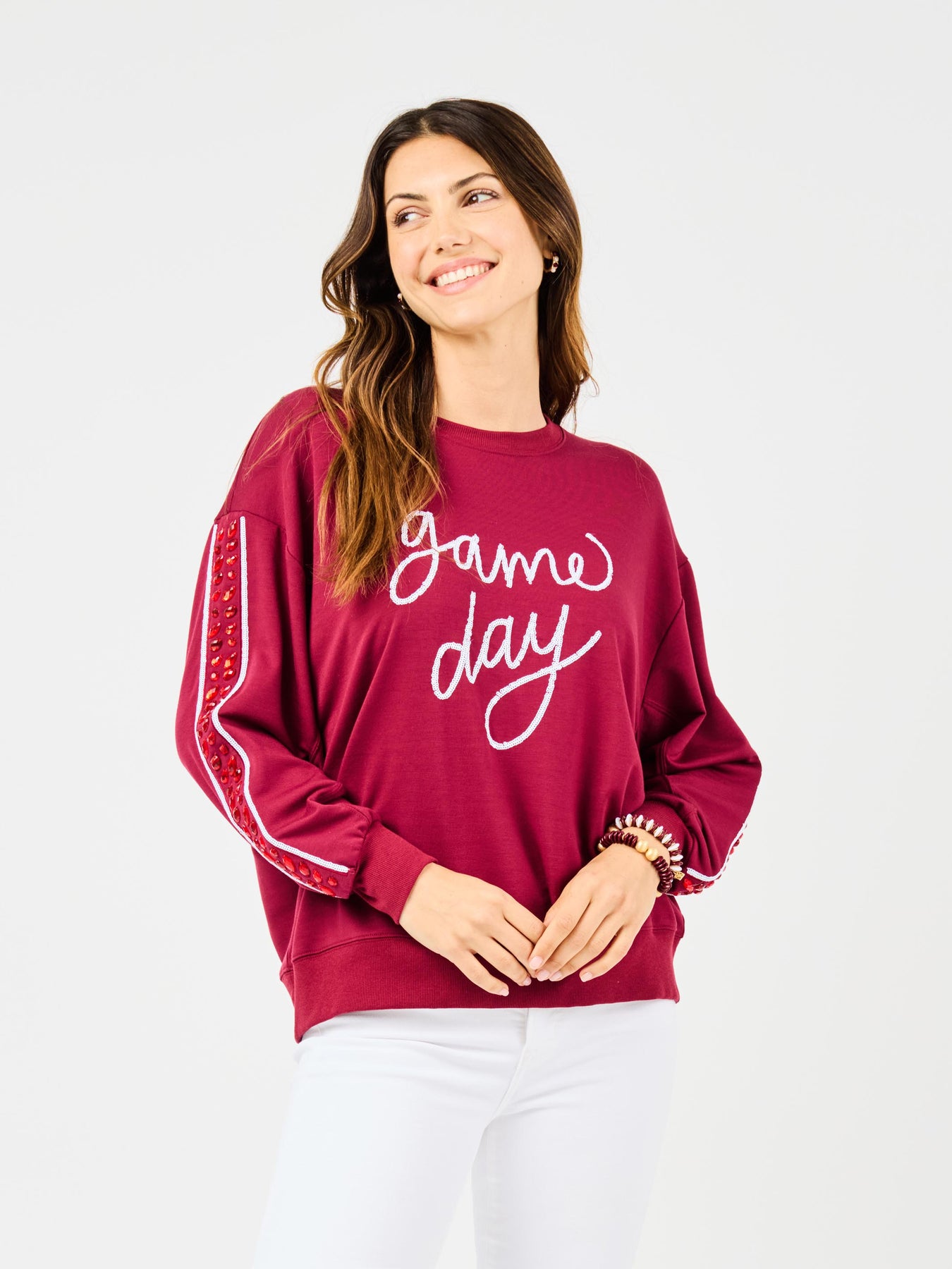 Cheer loud and stay cozy in the Sarah Sweatshirt. This sweatshirt combines soft fabric with a relaxed fit to keep you comfortable from kickoff to post-game celebrations. Whether you’re tailgating or watching from the stands, it’s the perfect way to show your team spirit in style.
