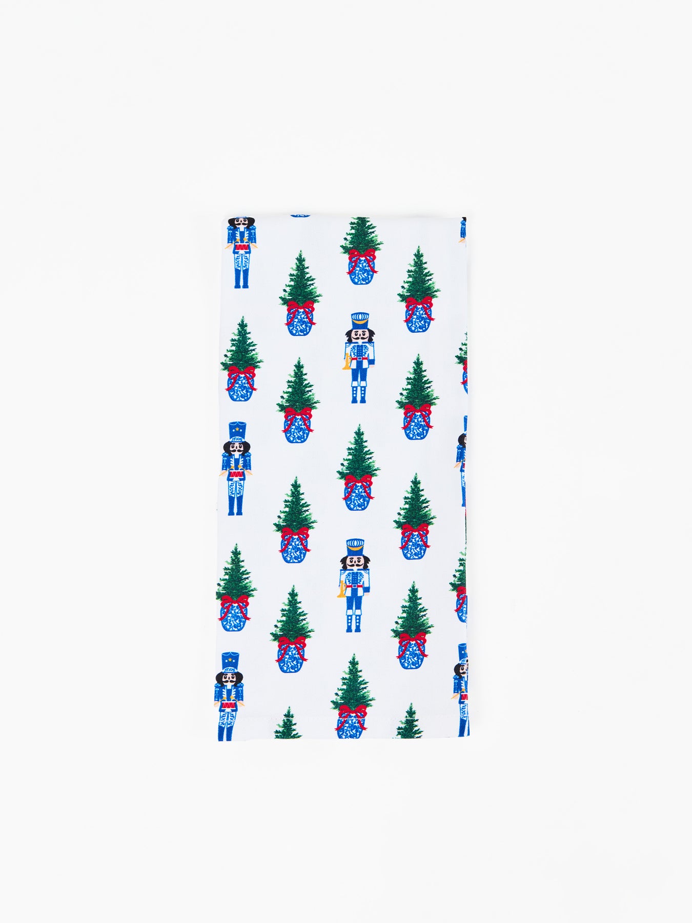 Add a playful holiday touch to your kitchen with our Merry Marchers Printed Tea Towel. Featuring a vibrant pattern of blue nutcrackers, ginger jars, and festive trees, this towel brings cheerful style to your seasonal décor. Perfect for holiday baking, gifting, or brightening up your countertop all season long.